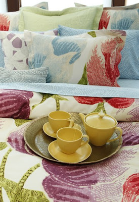 The colorful print duvet covers are made of sateen or cotton duck priced at $249.95, as well as a signature matelasse quilt. In addition, a stand-alone collection of vibrant, limited edition print
